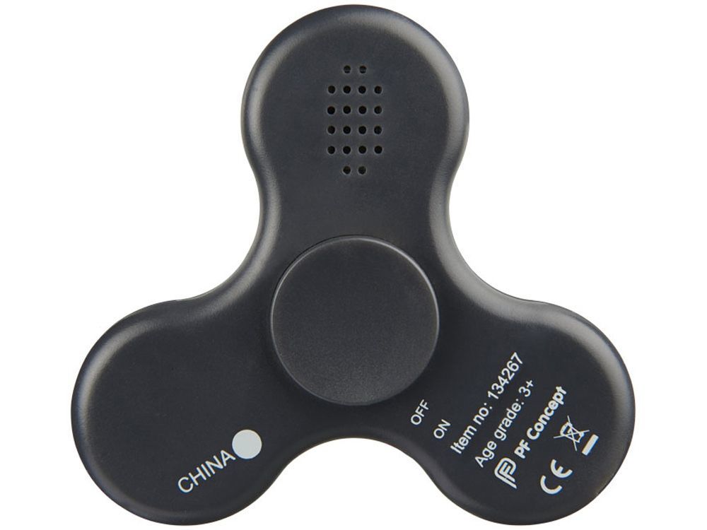 Спиннер Bluetooth Spin-It Widget ™ - это не обычный классический виджет, а музыкальный с Bluetooth колонкой и яркой LED подсветкой. Спиннер изготовлен из высококачественного пластика. Длина спиннера 75мм, в центре подшипник из нержавеющей стали, который быстро крутится и издает привлекательный свист. На одной из лопастей имеются отверстия, за которыми находится небольшой динамик. Спиннер легко синхронизируется с телефоном, планшетом или компьютером. Теперь можно раскручивать спиннер и слушать любимую музыку. Сбоку включается светодиодная подсветка, которая мигает с двух сторон разными цветами. LED подсветка очень красиво смотрится в движении, особенно в темноте.