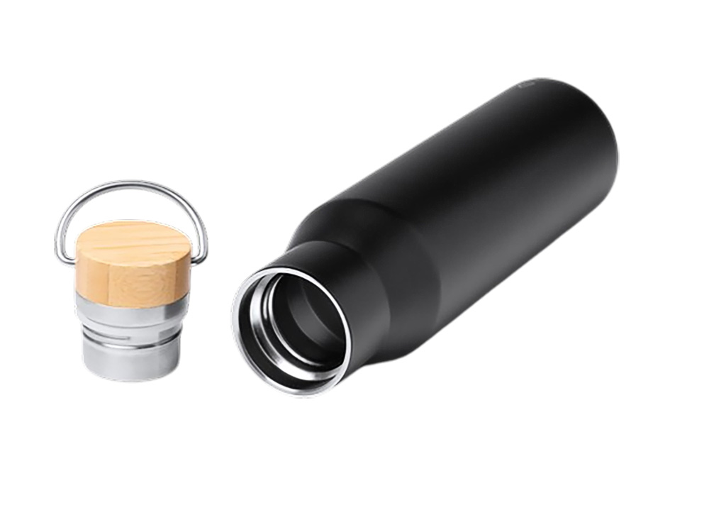 Термобутылка из нержавеющей стали 304 с двойной стенкой и бамбуковой крышкой. Объем: 550 мл. Упакована в экологичную коробку.