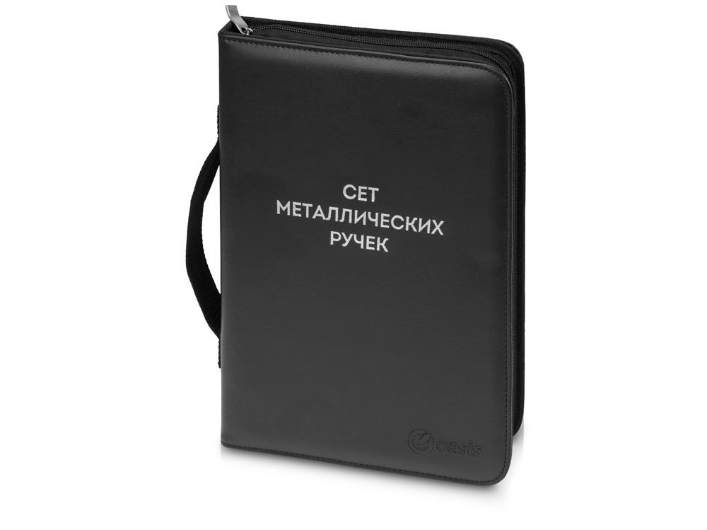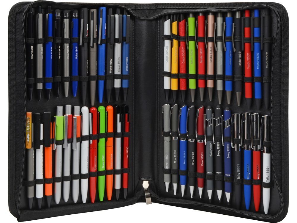 Промо-сет металлических ручек от Oasis - лучшее средство для продвижения своего бренда. В сет входят 15 популярных моделей в различных цветах на ваш выбор. На каждой ручке выполнено нанесение в виде артикула и названия для удобного ее поиска на сайте. Сам сет представлен небольшой кожаной папкой на 48 ручек, где каждая ручка зафиксирована двумя креплениями, откуда её легко можно доставать.