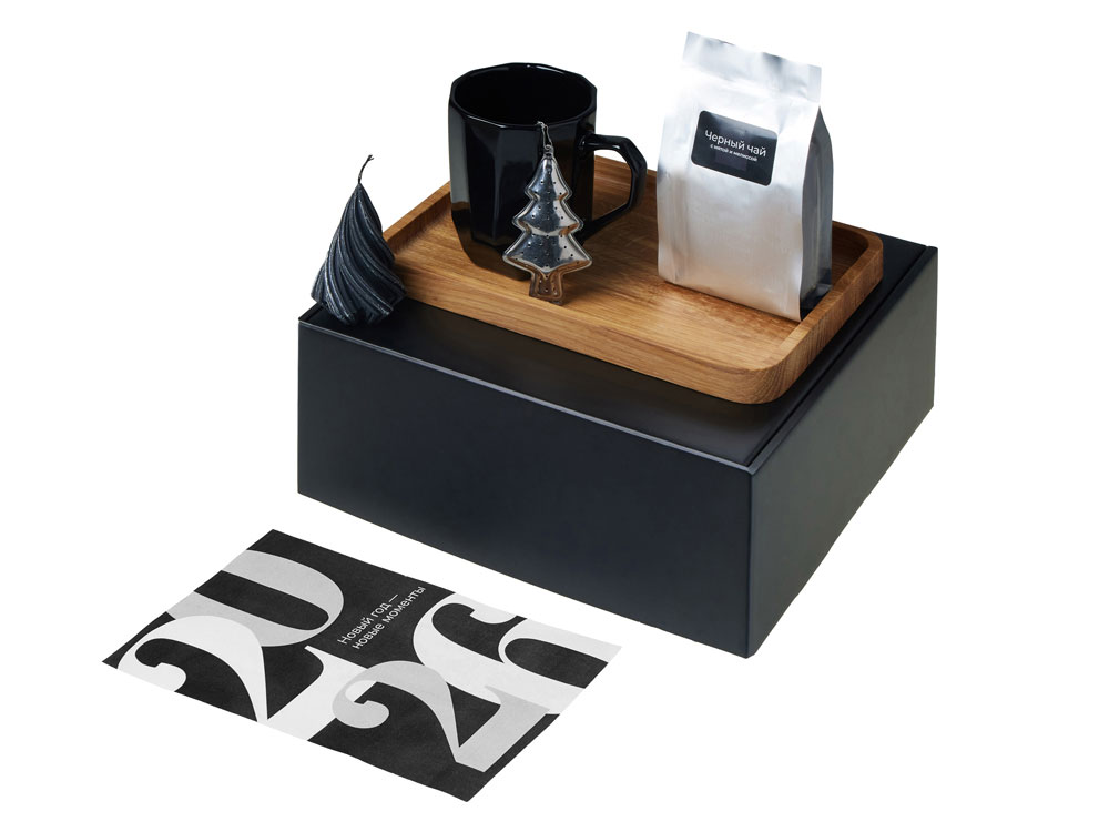 Подарочный набор с кружкой, подносом, свечой и чаем, черный
