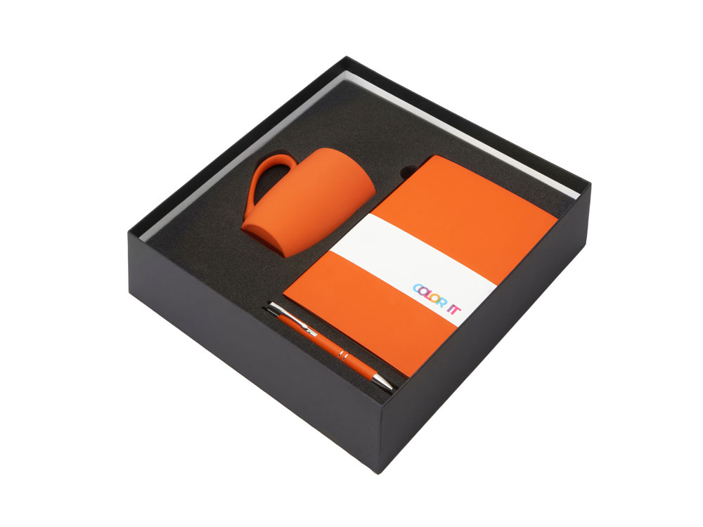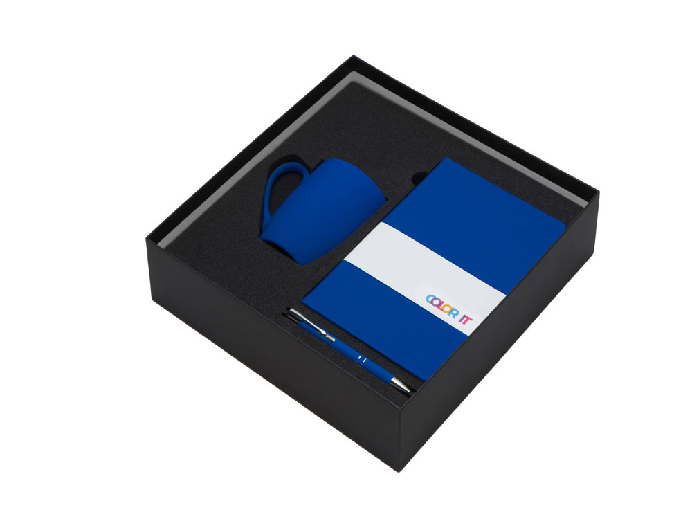 Материал товара: блокнот - искусственная кожа с покрытием soft-touch, ручка - алюминий с покрытием soft-touch, кружка - фарфор с покрытием soft-touch, коробка - картон