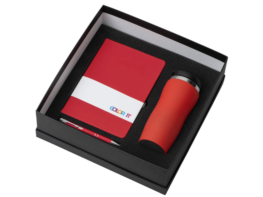 Подарочный набор с блокнотом С1, металлической ручкой и термокружкой, красный