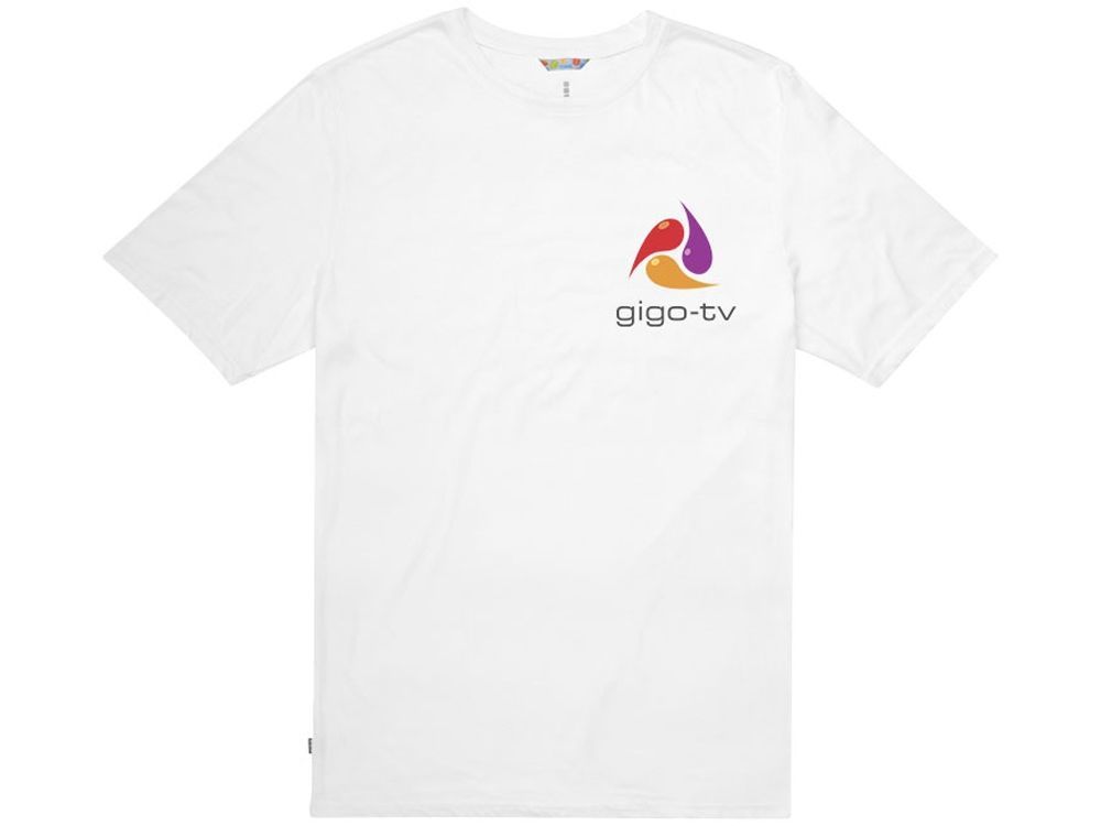 Футболка с короткими рукавами Sarek. Универсальный покрой. Воротник из ткани изделия. Сеточная строчка. Контрастная петелька внутри горловины. Однослойная джерси гладкого переплетения, 65% полиэстер и 35% хлопок. 120г/м.