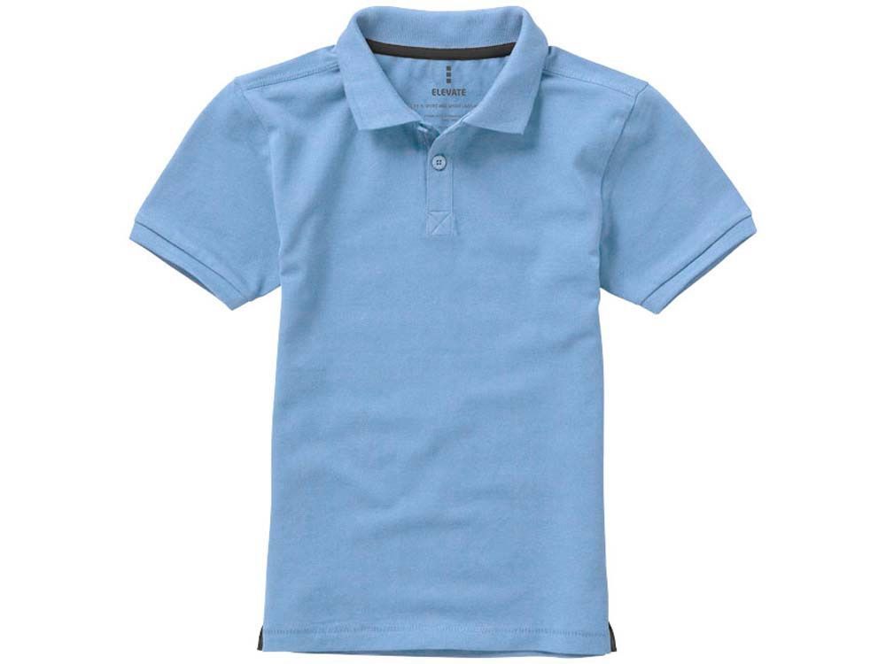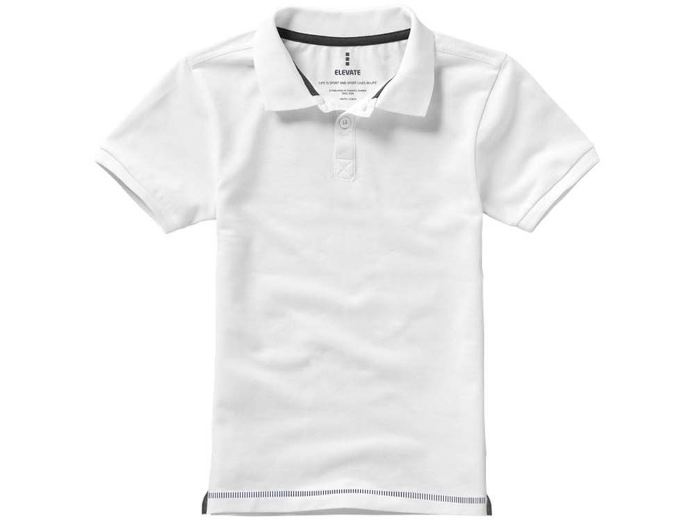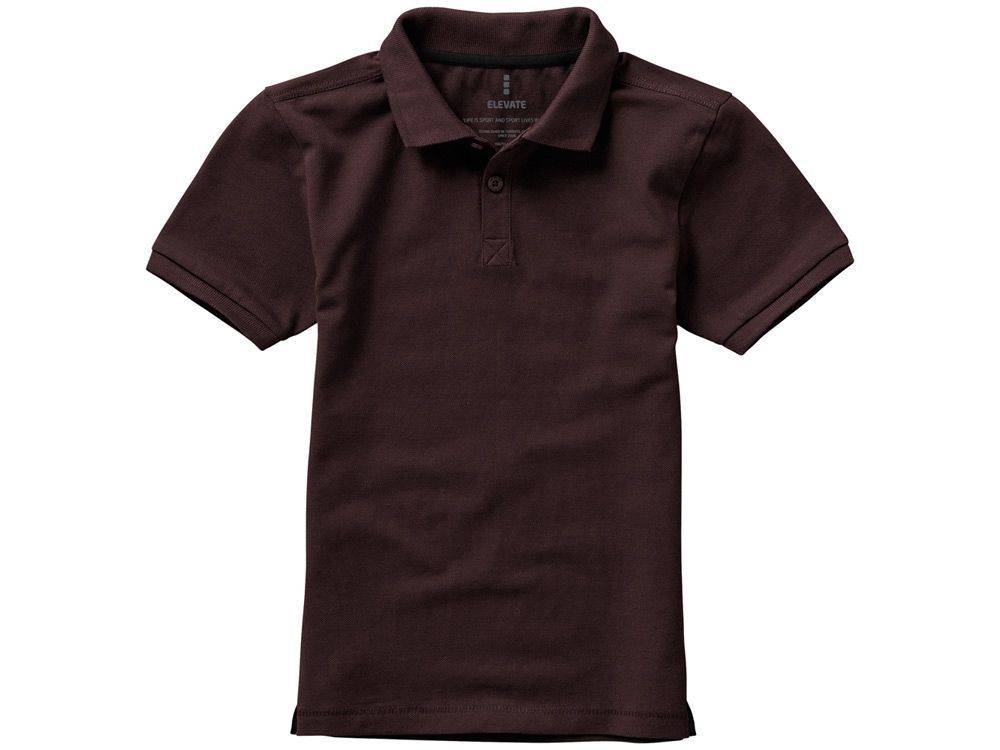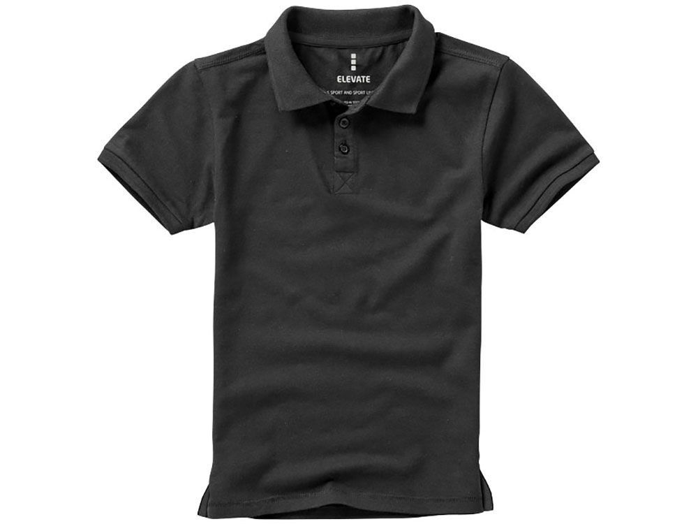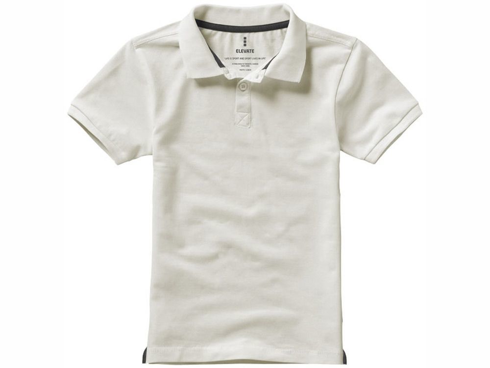 Детская рубашка поло с короткими рукавами Calgary. Стандартный покрой. Мужская и детская модели на двух пуговицах. Опущенный плечевой шов, цепная строчка. Боковые разрезы с атласной лентой внутри. Детали со швами Pick-Stitch. Принт лого сзади в тон изделия. Атласная лента внутри горловины. Полумесяц. Резинка 1х1 на воротнике и манжетах. Трикотажное пике, 100% хлопок. 200 г/м².