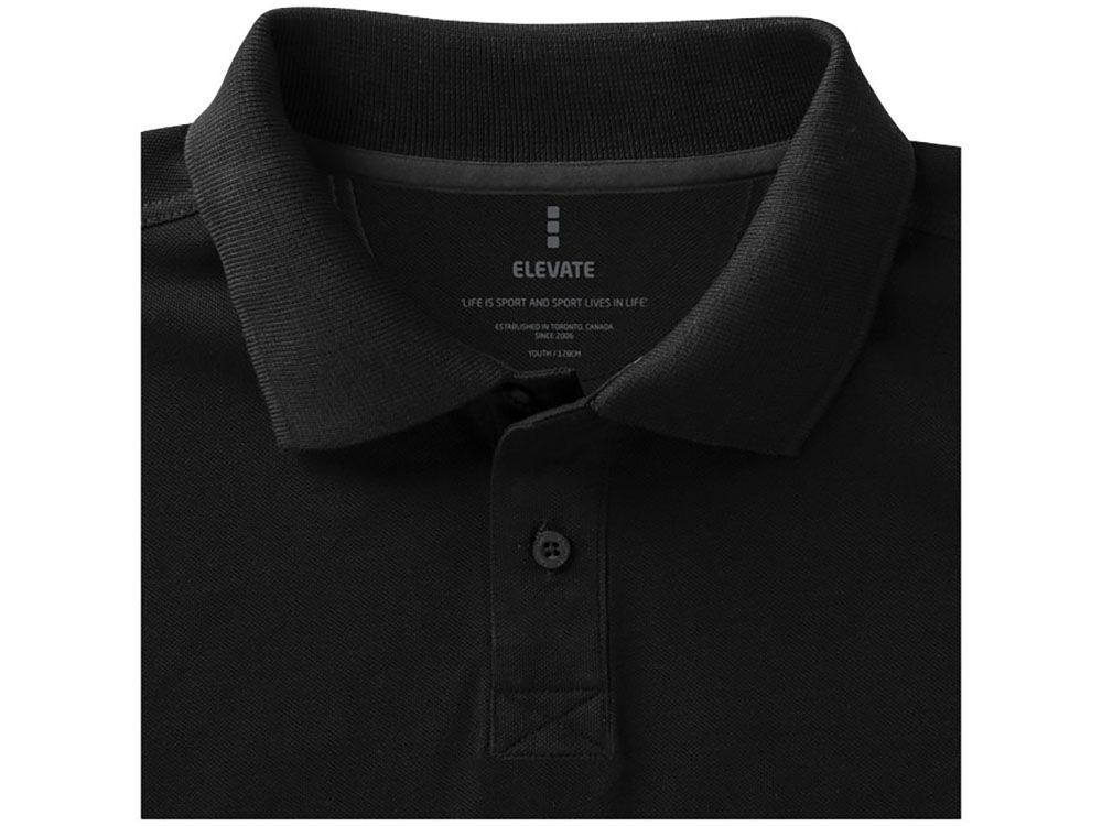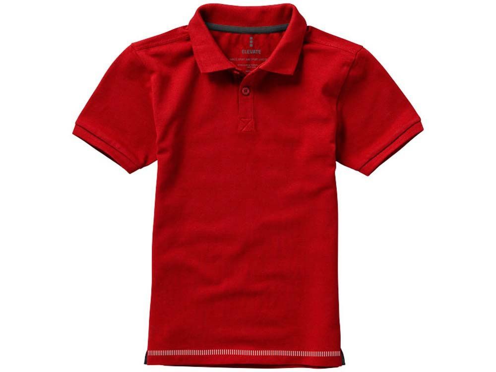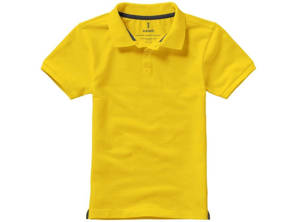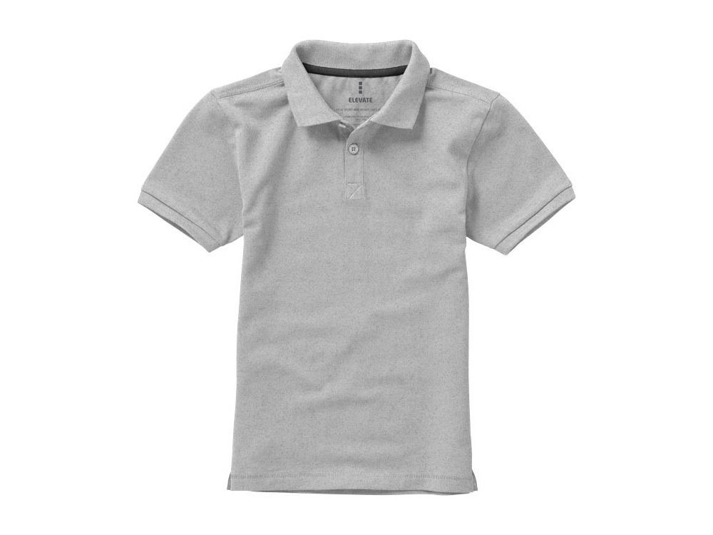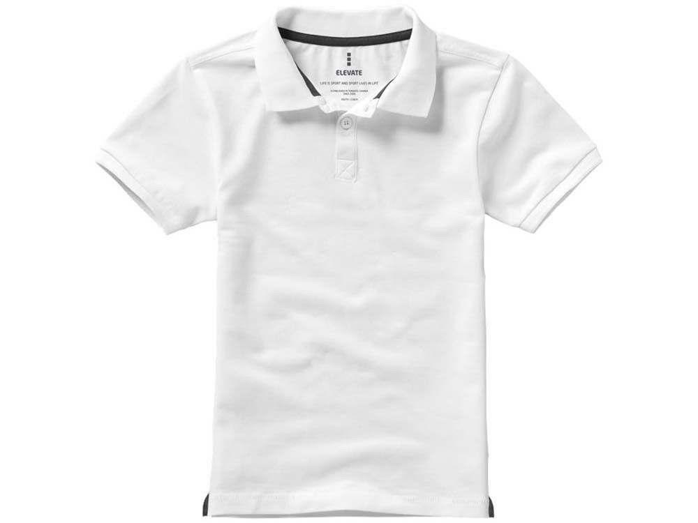 Детская рубашка поло с короткими рукавами Calgary. Стандартный покрой. Мужская и детская модели на двух пуговицах. Опущенный плечевой шов, цепная строчка. Боковые разрезы с атласной лентой внутри. Детали со швами Pick-Stitch. Принт лого сзади в тон изделия. Атласная лента внутри горловины. Полумесяц. Резинка 1х1 на воротнике и манжетах. Трикотажное пике, 100% хлопок. 200 г/м².