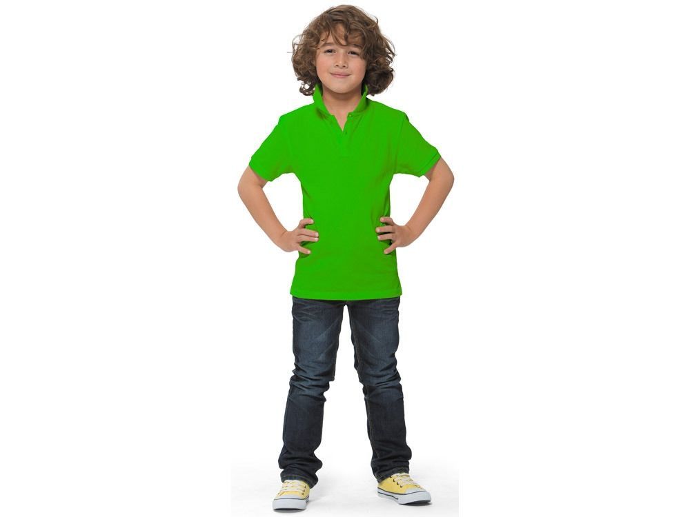 Детская рубашка поло с короткими рукавами Calgary. Стандартный покрой. Мужская и детская модели на двух пуговицах. Опущенный плечевой шов, цепная строчка. Боковые разрезы с атласной лентой внутри. Детали со швами Pick-Stitch. Принт лого сзади в тон изделия. Атласная лента внутри горловины. Полумесяц. Резинка 1х1 на воротнике и манжетах. Трикотажное пике, 90% хлопок, 10% вискоза. 200 г/м².