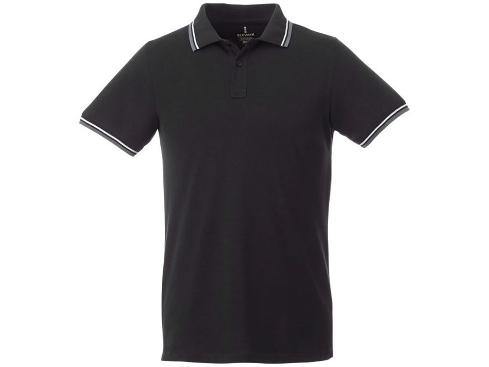 Мужская футболка поло Fairfield с коротким рукавом с проклейкой. Воротник гладкой вязкой в рубчик. Манжеты гладкой вязкой в рубчик. Контрастные окантовки. Планка с двумя пуговицами. Гравированные пуговицы в цвет изделия. Комфортный ярлык-трансфер на изделии. Трикотажное пике, 100% хлопок. 180 г/м².