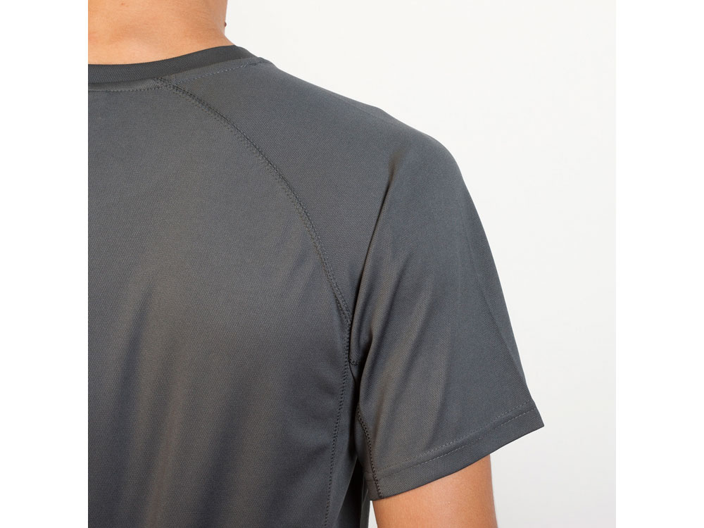 Спортивная мужская футболка с коротким рукавом реглан. Круглый вырез горловины и боковая вставка с отстрочкой плоским швом.
