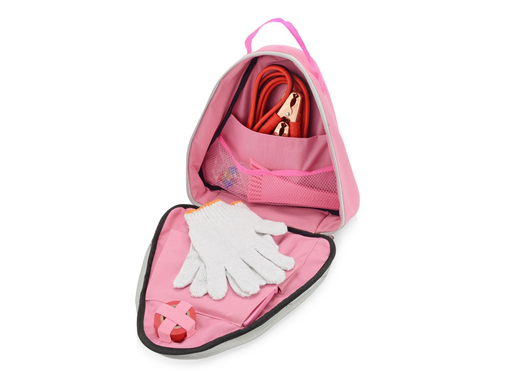 Этот изысканный набор аксессуаров и инструментов на случай поломки машины был специально разработан для автоледи. Несмотря на кажущееся легкомыслие, набор очень серьезен и вмещает в себя различные инструменты, перчатки, скребок, изоленту и приспособление для прикуривания аккумулятора- 2,25 м. Чехол выполнен в виде знака аварийной остановки. Тампопечать (1 цвет (цветные изделия)) на данный товар осуществляется бесплатно. Оплачивается только настройка оборудования в размере 3000 рублей на весь тираж.