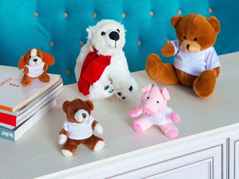 Брелок для ключей с плюшевым медведем в белой футболке. Трогательный и оригинальный промосувенир, которому будет рад каждый человек. Белая футболка на медведе отлично подойдет для размещения принта и рекламы бренда компании.