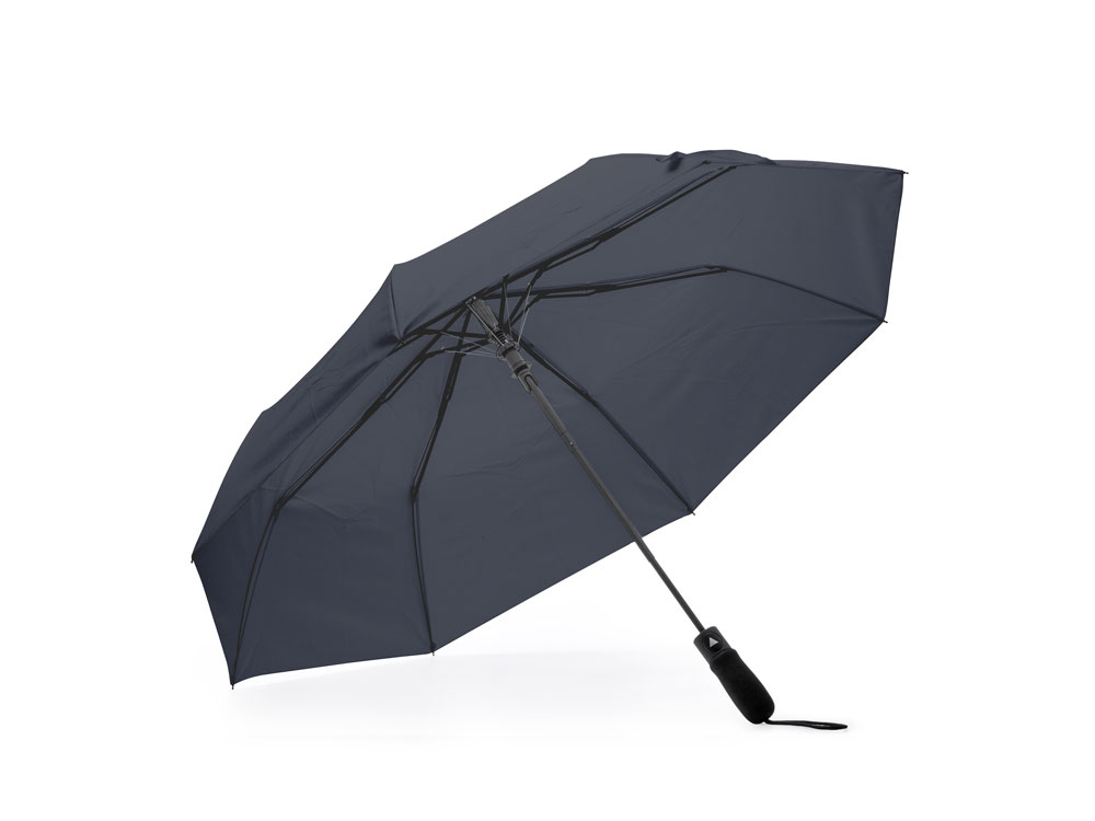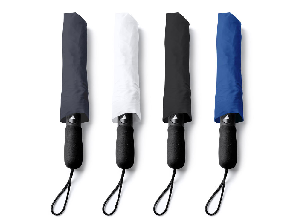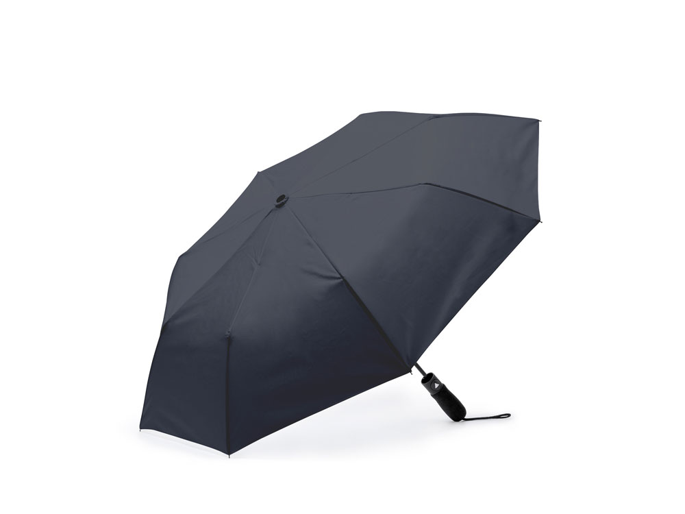 Складной зонт с автоматическим открытием. Ткань эпонж 190T с чехлом. Ручка из ЭВА и металлические спицы черного цвета.