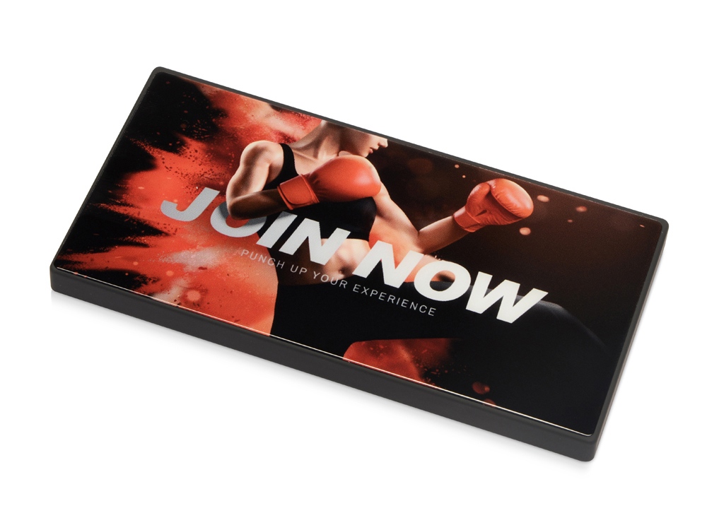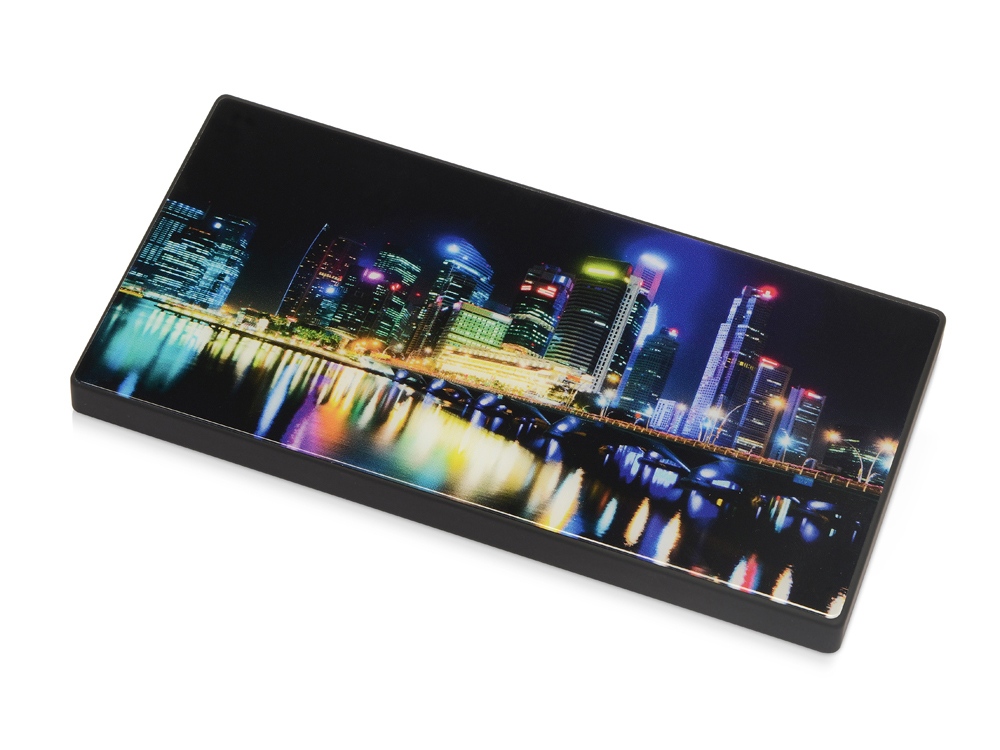 Повербанк емкостью 5000 mAh в строгом геометричном дизайне. Корпус сделан из качественного АБС-пластика с покрытием soft-touch. Ключевая деталь дизайна портативного аккумулятора — прочное закаленное стекло, которое можно декорировать. Оно обладает большим рекламным потенциалом: подходит для печати полноцветного контрастного изображения логотипа или других рекламных материалов. Закаленное стекло поставляется вместе с повербанком и легко крепится на корпус после запечатки.