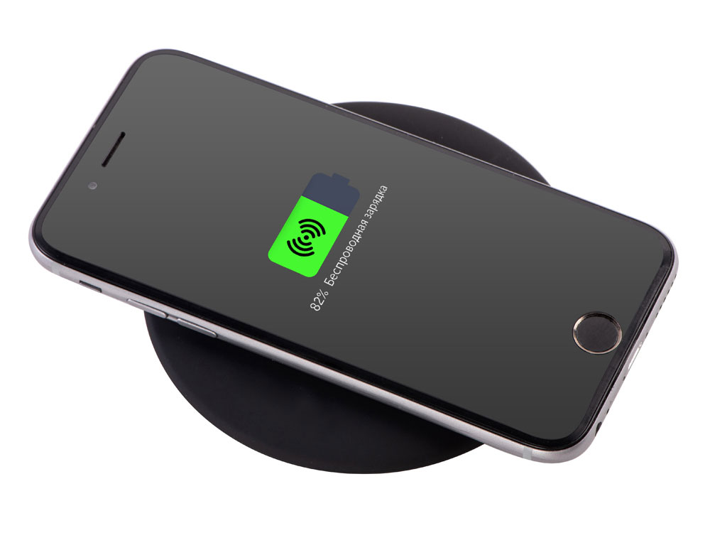 Moon spot — беспроводное устройство для зарядки в бархатистом корпусе софт-тач от Evolt. При гравировке верхний слой снимается, открывая подсветку — на бархатистом черном фоне светящиеся белым контуры выглядят особенно ярко и контрастно.