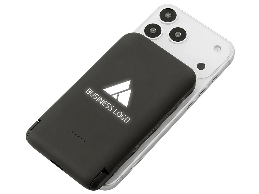 Беспроводной внешний аккумулятор Magflash — это не просто запас энергии, а стильный и умный аксессуар для современного ритма жизни. С ёмкостью 10000 мАч и быстрой зарядкой он надежно обеспечивает энергией смартфоны и современные гаджеты USB-C , обеспечивая до нескольких полных циклов зарядки. Поддержка беспроводной зарядки мощностью 15 Вт позволяет быстро восполнять энергию без проводов — просто положите устройство на поверхность, к iPhone повербанк примагнитится, что значительно облегчает его использование. Встроенный держатель-подставка превращает аккумулятор в удобную подставку для телефона во время зарядки или просмотра видео. А светодиодная подсветка логотипа создаёт атмосферу — работает как индикатор заряда и стильный акцент вашего бренда. Идеально подходит на каждый день.