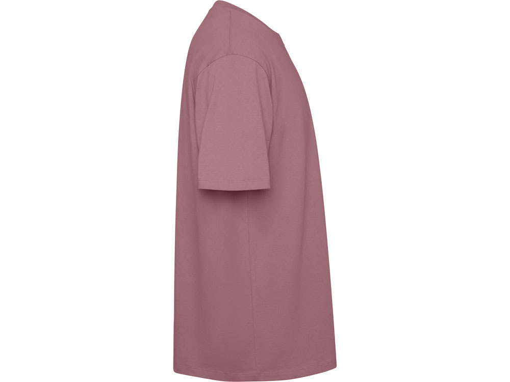 Оверсайз футболка с коротким рукавом. Круглый вырез горловины обработан рибом 2х1. Боковые швы. Широкая двойная отстрочка по рукавам и низу.