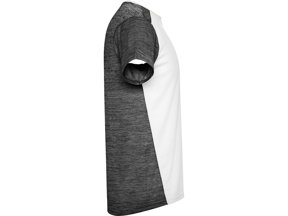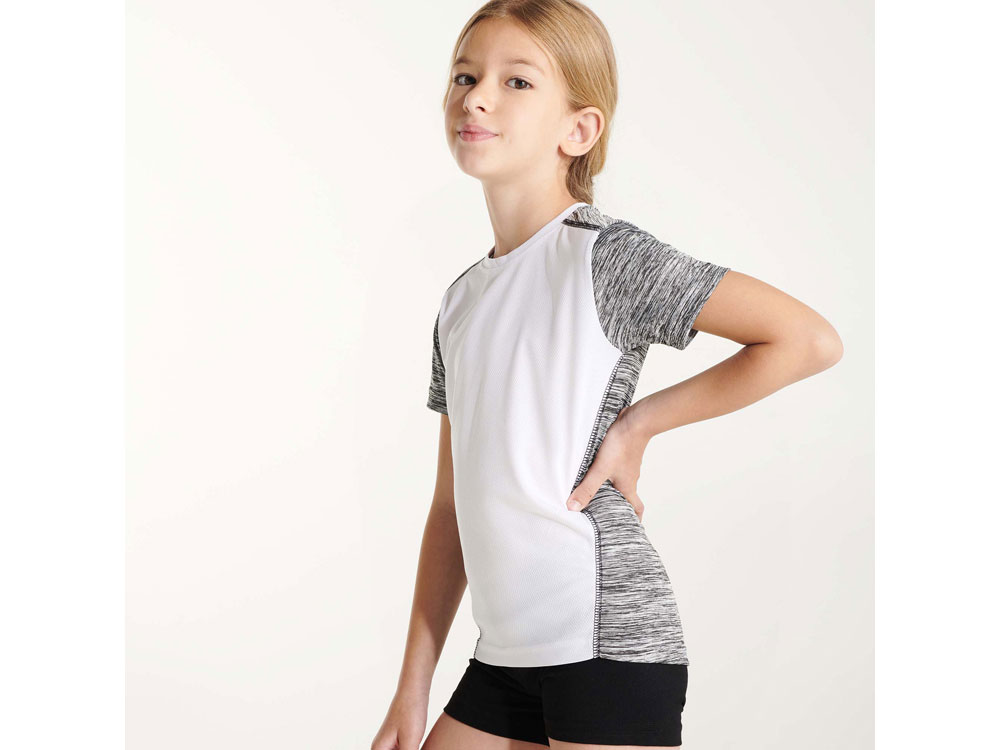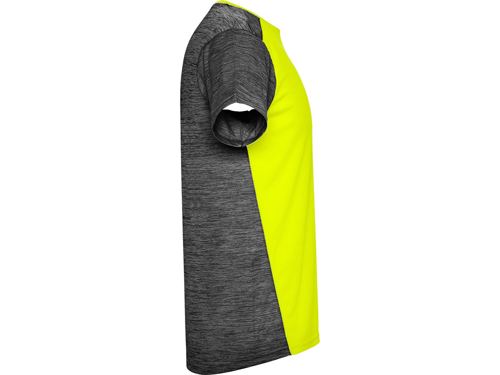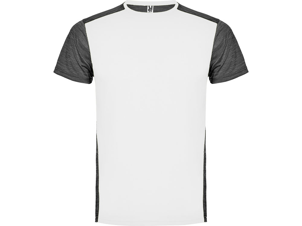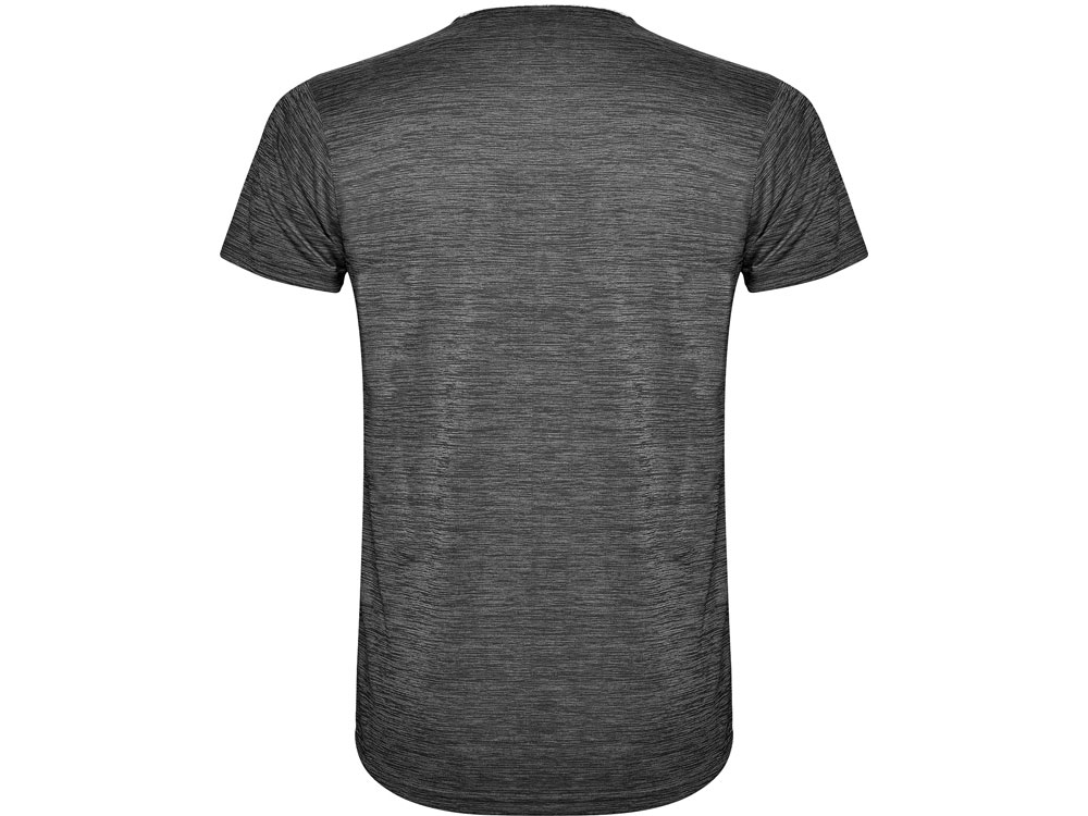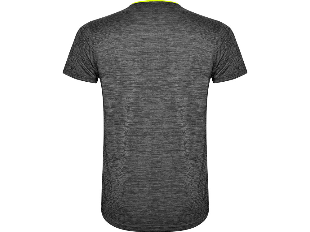 Футболка с коротким рукавом из технологического полотна. Круглый вырез горловины. Комбинация двух полиэстеровых полотен. Основное полотно на полочке со структурой, дополнительное полотно на спинке, рукавах и плечах с меланжевым эффектом. Задняя часть немного длиннее. Легко сохнущее дышащее полотно.