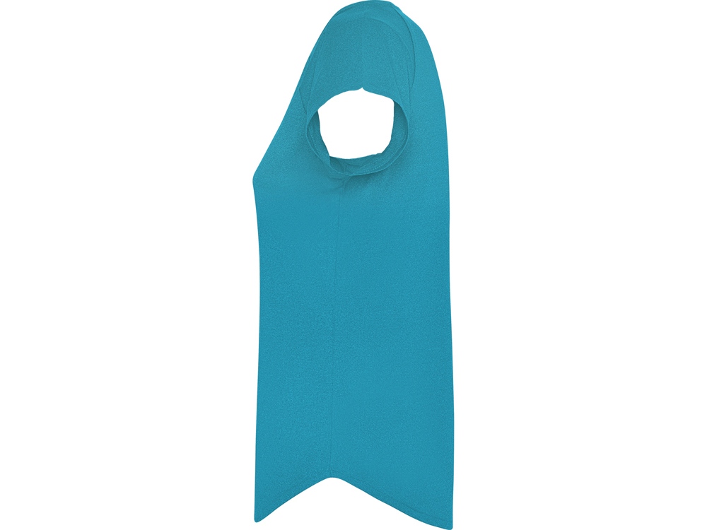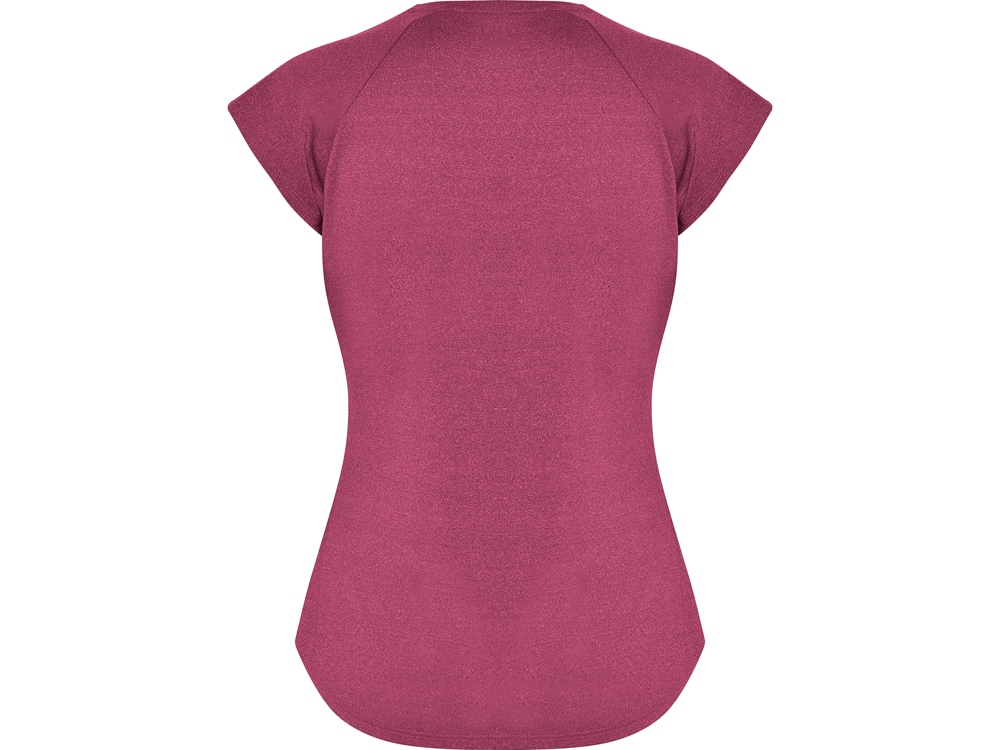 Спортивная женская футболка с коротким рукавом реглан. Вырез горловины V. Полотно из полиэстера на ощупь напоминающее хлопок. Приталенный силуэт.