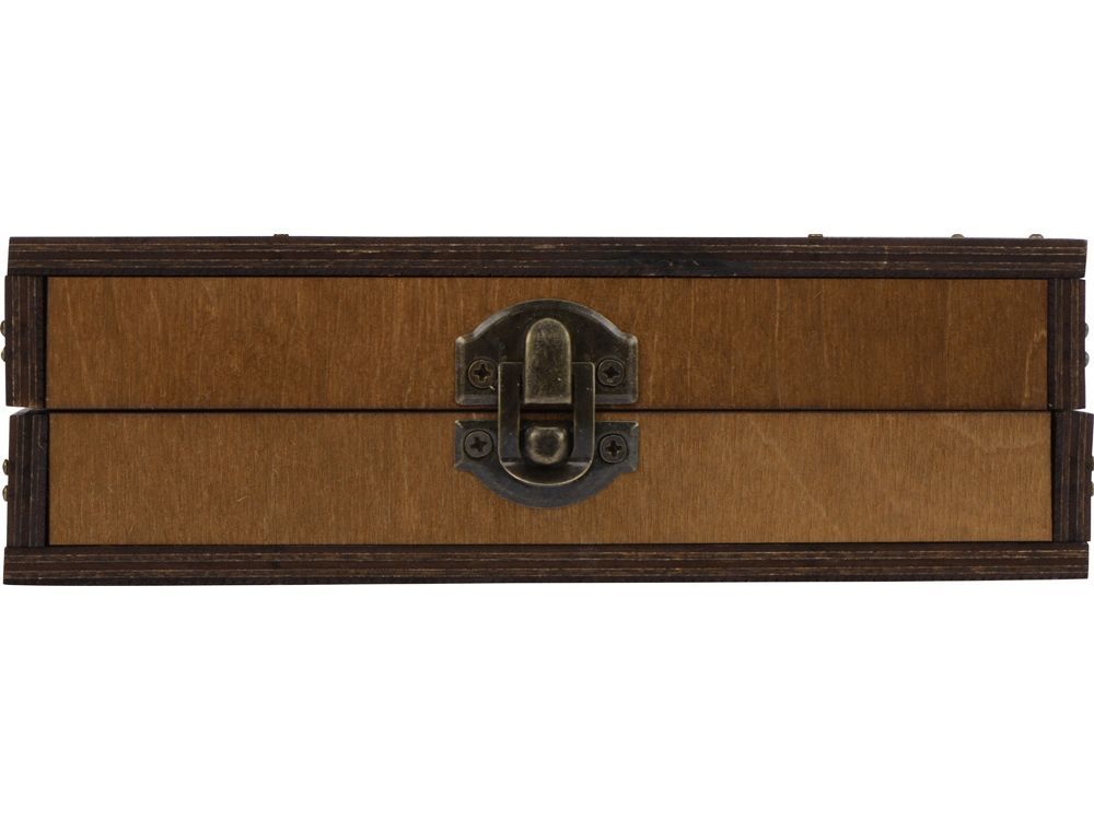 В набор аксессуаров для вина входят штопор-открывалка, воротничок на бутылку, пробка для бутылки и даже термометр. Набор поставляется в презентабельном деревянном футляре.
