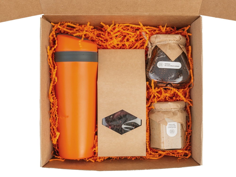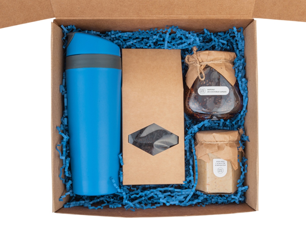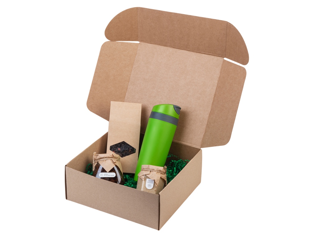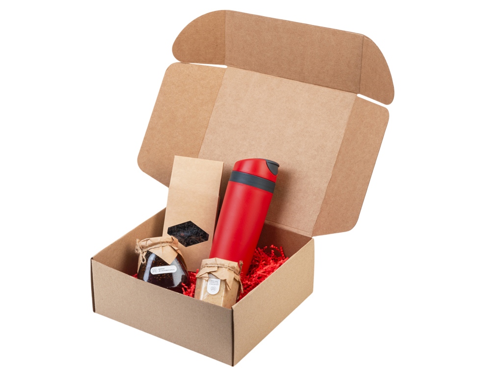 Материал товара: коробка - картон, банка - стекло, термокружка - полипропилен
