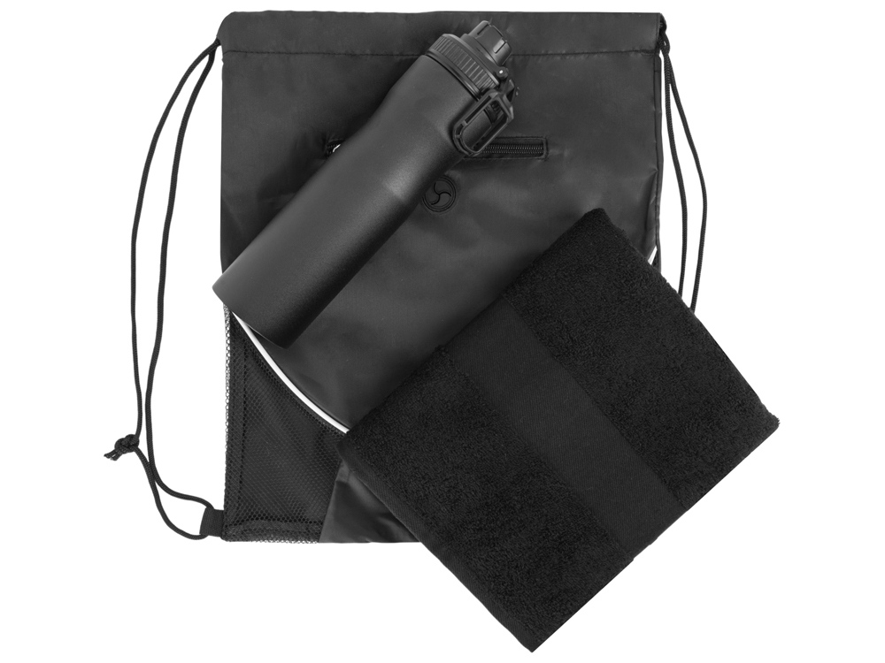 Материал товара: рюкзак- полиэстер 210D, полотенце- 100% хлопок, бутылка- нержавеющая сталь