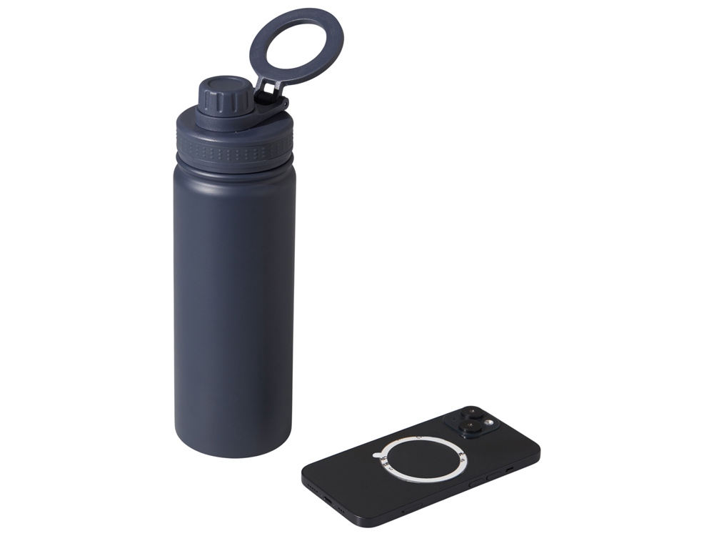 Современные технологии и стильный дизайн объединились в одной бутылке! Спортивная бутылка с магнитным держателем MagSafe поможет вам всегда держать водный баланс в норме и сделает жизнь удобнее. Благодаря магнитному держателю бутылка надежно удерживает iPhone 12 версии и новее. Магнитное крепление подходит также и для любого смартфона, т.к. в комплекте есть металлическое кольцо с клейким слоем. Кольцо наклеивается на заднюю крышку или чехол смартфона, и вы можете крепить смартфон к бутылке за секунду. Объем 600мл.