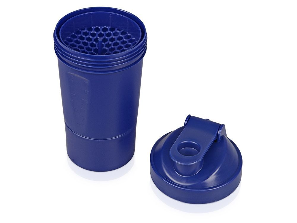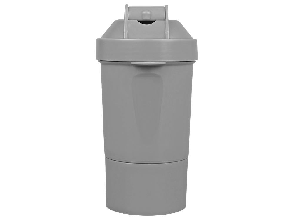 Шейкер для спортивного питания - это один из необходимых аксессуаров для спортсменов и людей, ведущих активный образ жизни. В нем можно приготовить протеиновый коктейль или фруктовый напиток. Шейкер классической формы, он удобно лежит в руке, к донышку прикручивается емкость для смешивания (таблетница), в которой можно хранить спортивные добавки: протеиновый порошок, витамины и другие концентраты. Внутри колбы имеется пластиковая сетка, чтобы процеживать спортивный напиток, а также металлический размешиватель, который растворяет порошок в напитке без комочков. Объем - 400мл. Шейкер изготовлен из пищевого пластика, он герметичен и легко моется.