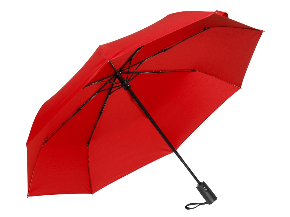 Купол зонта выполнен из переработанного пластика. Гибкие спицы из стекловолокна делают зонт стойким к порывам ветра. Удобная ручка софт тач. Фиксирующая купол застежка на липучке шириной 3 см - дополнительная опция для нанесения вашего логотипа.