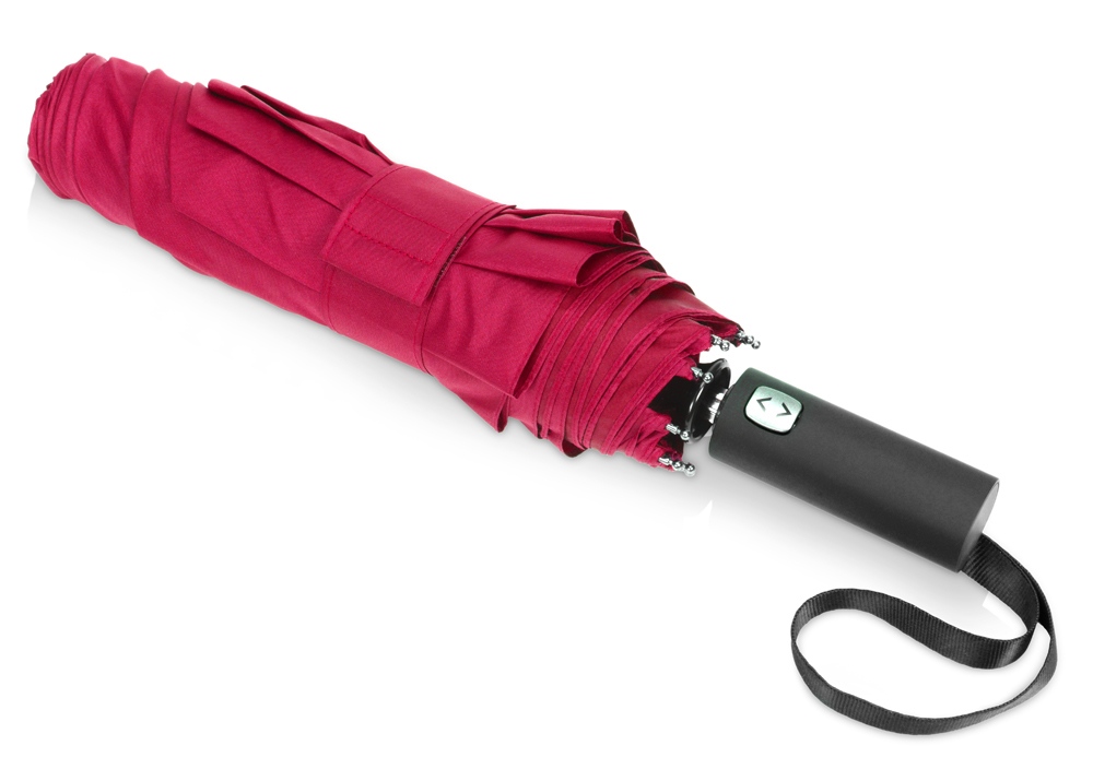Купол этого складного зонта-автомата состоит из двух полотен и имеет большой диаметр 127 см. Прочный каркас и спицы из стекловолокна устоят при порывах ветра. Благодаря этому зонт служит надежным укрытием в самый сильный дождь. Закрывается в 3 сложения. Ручка обработана мягким покрытием soft-touch. Широкий хлястик для удобства персонализации. Трафаретная печать (1 цвет (цветные изделия)) на данный товар осуществляется бесплатно. Оплачивается только настройка оборудования в размере 8000 рублей на весь тираж.