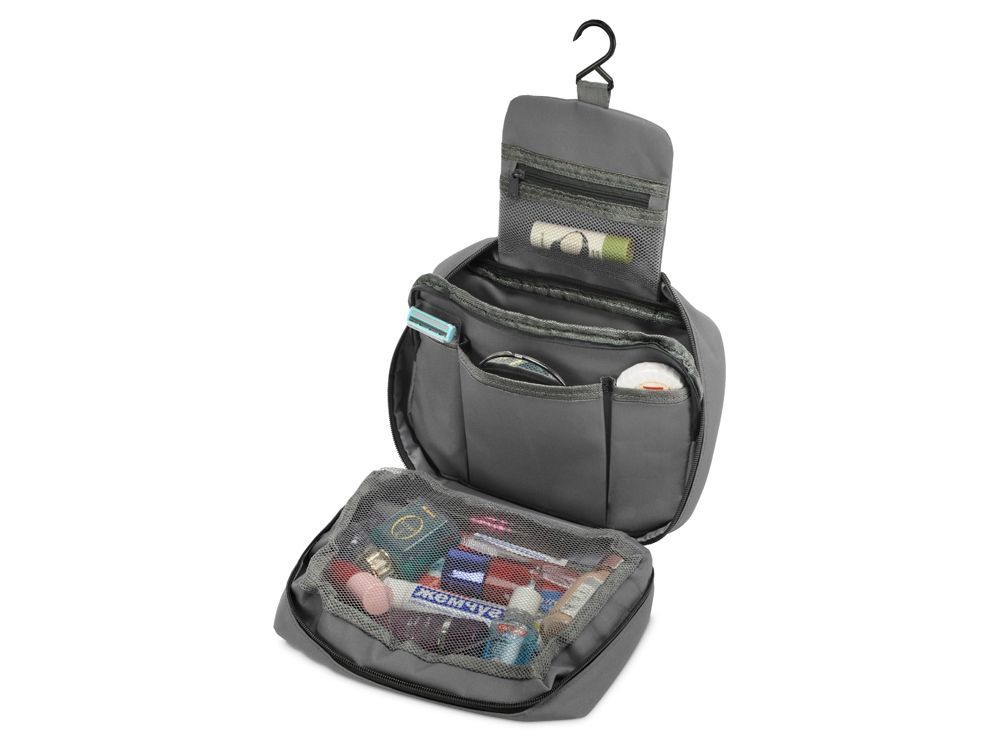• Вместительное пространство с двумя большими отделениями и несколькими карманами дает возможность эргономично распределить весь дорожный арсенал косметических и туалетных принадлежностей.