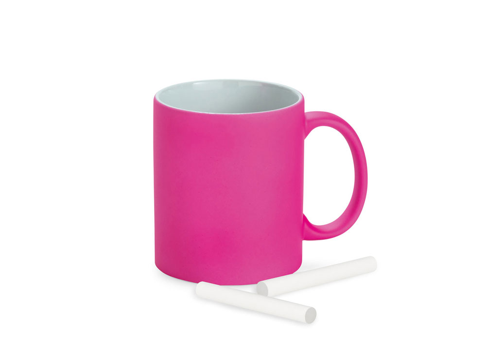 Керамическая кружка, с неоновой матовой отделкой, емкостью до 350 мл, которая поставляется в коробке. В данной кружке специальное покрытие которое позволяет писать на ней мелом (не включен). Вид нанесения, рекомендуемый поставщиком: тампопечать, трафаретная печать, низкотемпературный обжиг