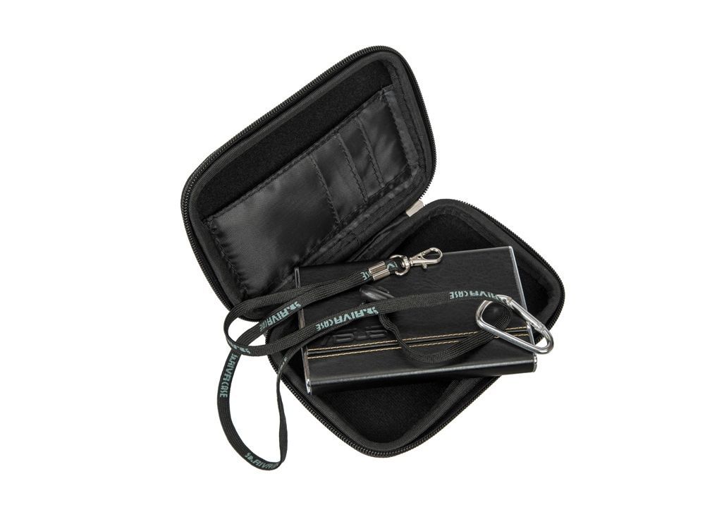• Устройство надежно крепится внутри чехла специальной фиксирующей лентой, кроме того предусмотрены дополнительные внутренние карманы для кабеля, карт памяти и аксессуаров.