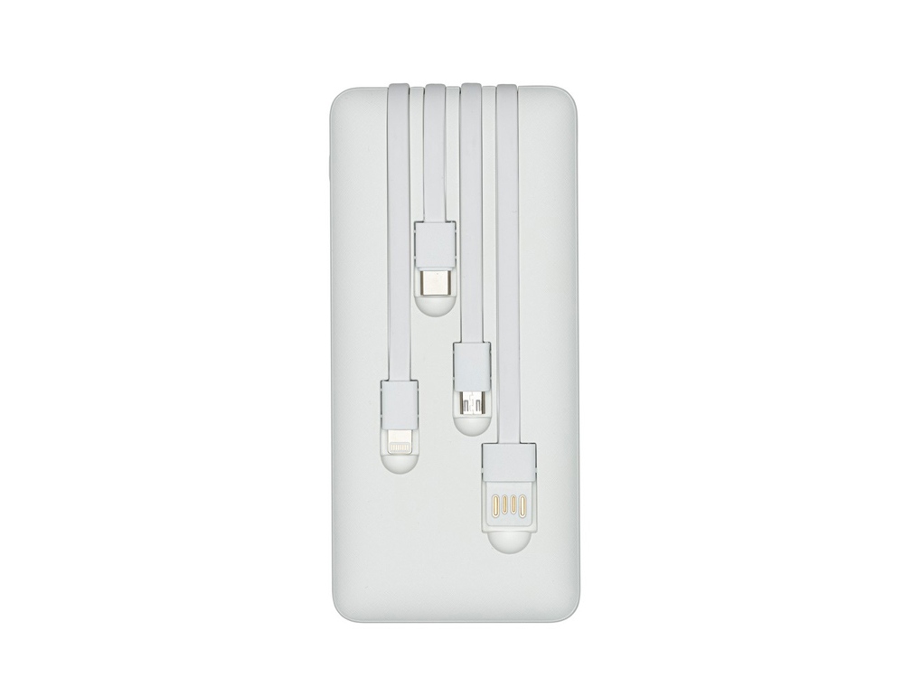 RIVACASE VA2210 (10000 мАч) внешний аккумулятор с дисплеем и встроенными кабелями, белый, 12/48