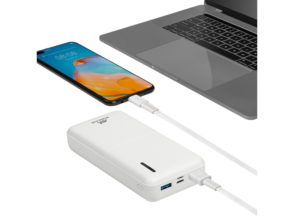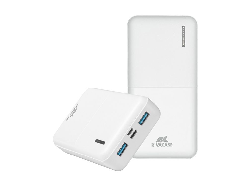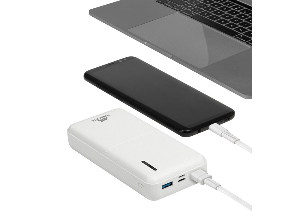 RIVACASE VA2572 (20000 мАч) QC/PD 20W внешний аккумулятор с дисплеем, белый 12/24
