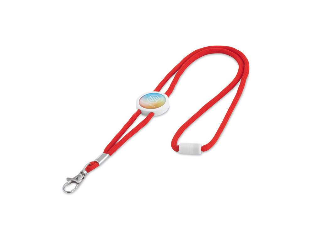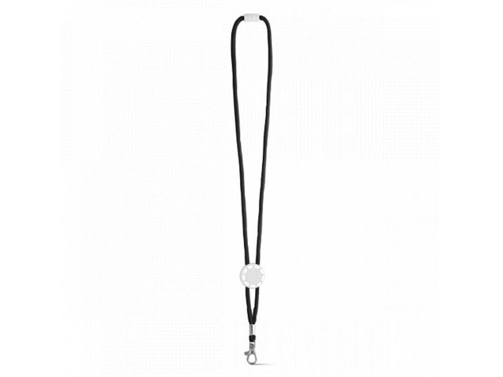 Лента для бейджа из полиэстера, регулируемая, с металлическим карабином и местом для нанесения объемной наклейки. Вид нанесения, рекомендуемый поставщиком: тампопечать, заливка полимерной смолой
