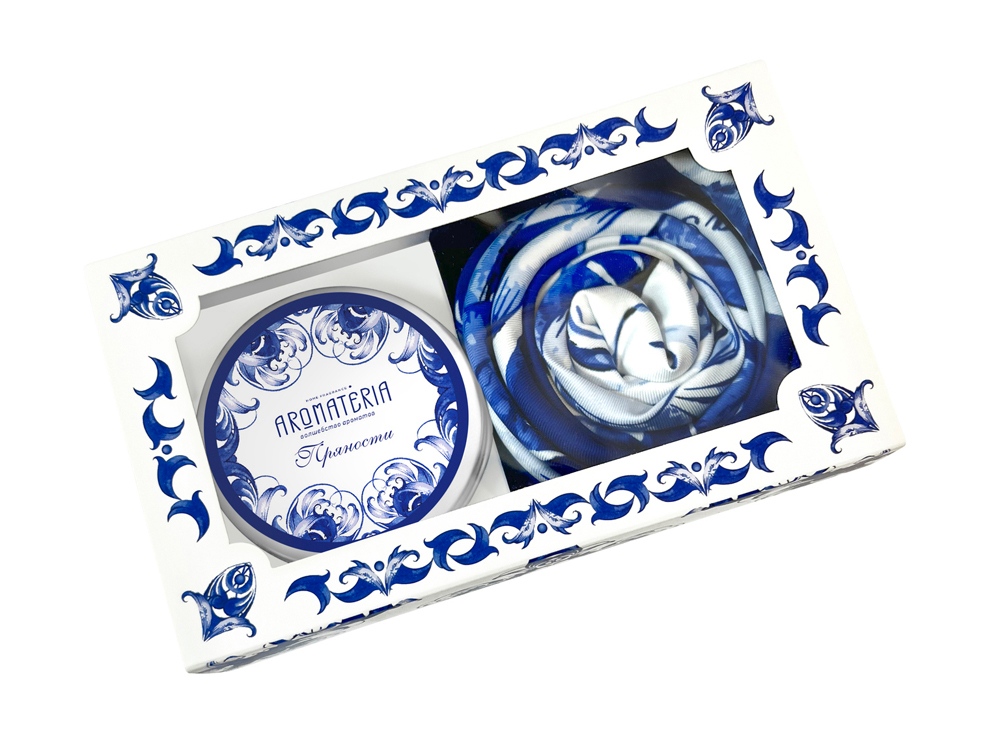 Набор: платок Гжель и свеча Птица счастья