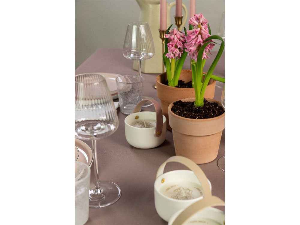 Стильная свеча в фарфоровом кашпо с крышкой и кожаными ручками от Valerie Concept. Изготовлена из натурального соевого воска с хлопковым фитилем, подарит вам долгие часы наслаждения и умиротворения, благодаря нежному аромату с нотками чарующих цветов и хлопка.