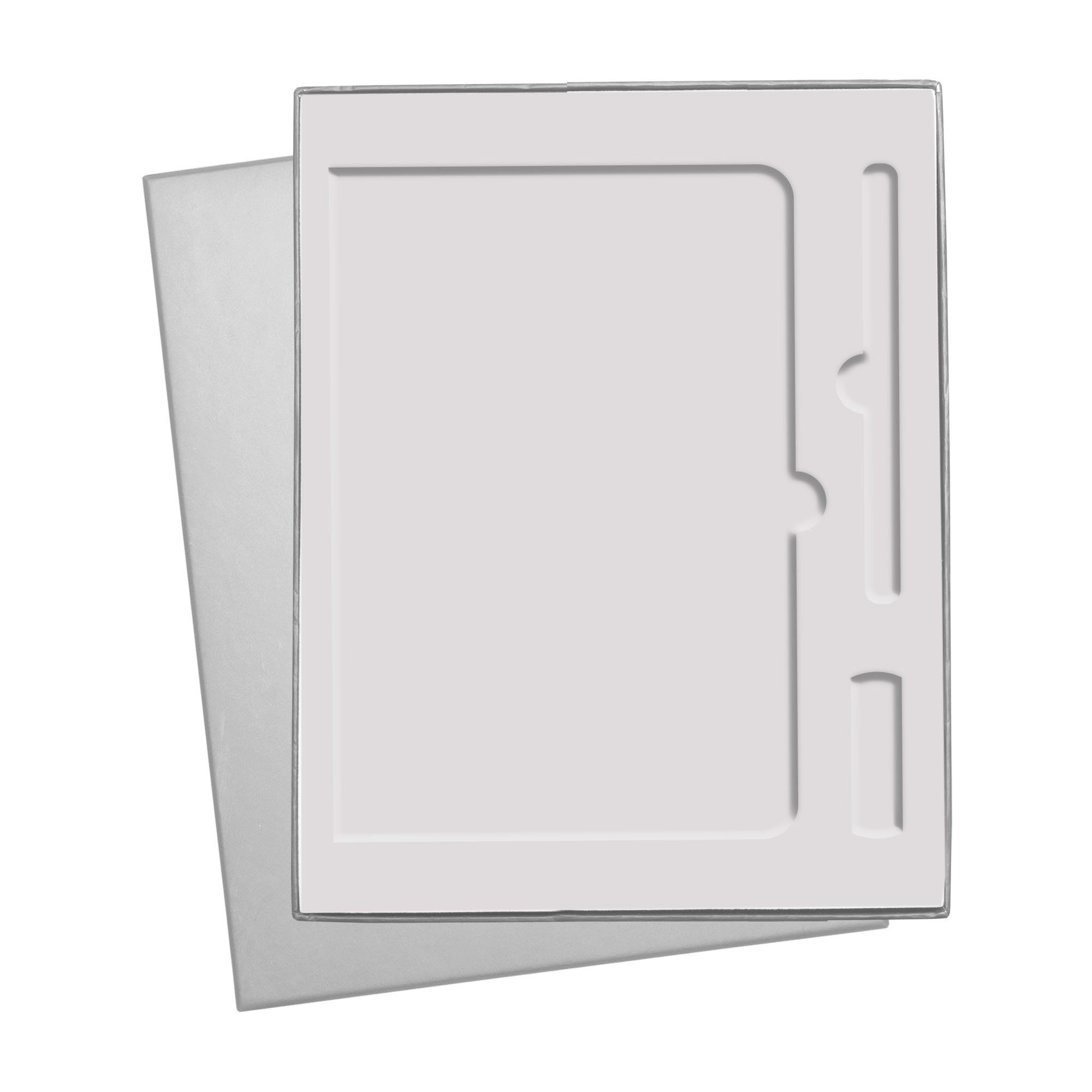 Подарочная коробка «крышка/дно» для ежедневника А5, ручки и флешкиМатериал коробки: формованный мелованный картон высокой белизны, толщина 2 мм, кашированный дизайнерской однотонной бумагой с матовой ламинацией. Цвет – элегантный светло-серый, однородный, приглушенный за счет матовости материала.Материал ложемента: EVA, цвет белый. Покрытие – флок цвета слоновой кости – слегка ворсистое, тактильно приятное. Подложка EVA c флокированным покрытием для поддержания высоты в отделении для ручки и флешки. Лазерная вырубка отделений ложемента.Дно коробки: флокированное покрытие цвета слоновой кости.Защитная упаковка коробки: пластиковый пакет с многоразовой застежкой (липкая лента).